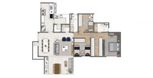 UNIDADE COM 122 METROS, 3 QUARTOS, 2 VAGAS, DEPÓSITO PRIVATIVO